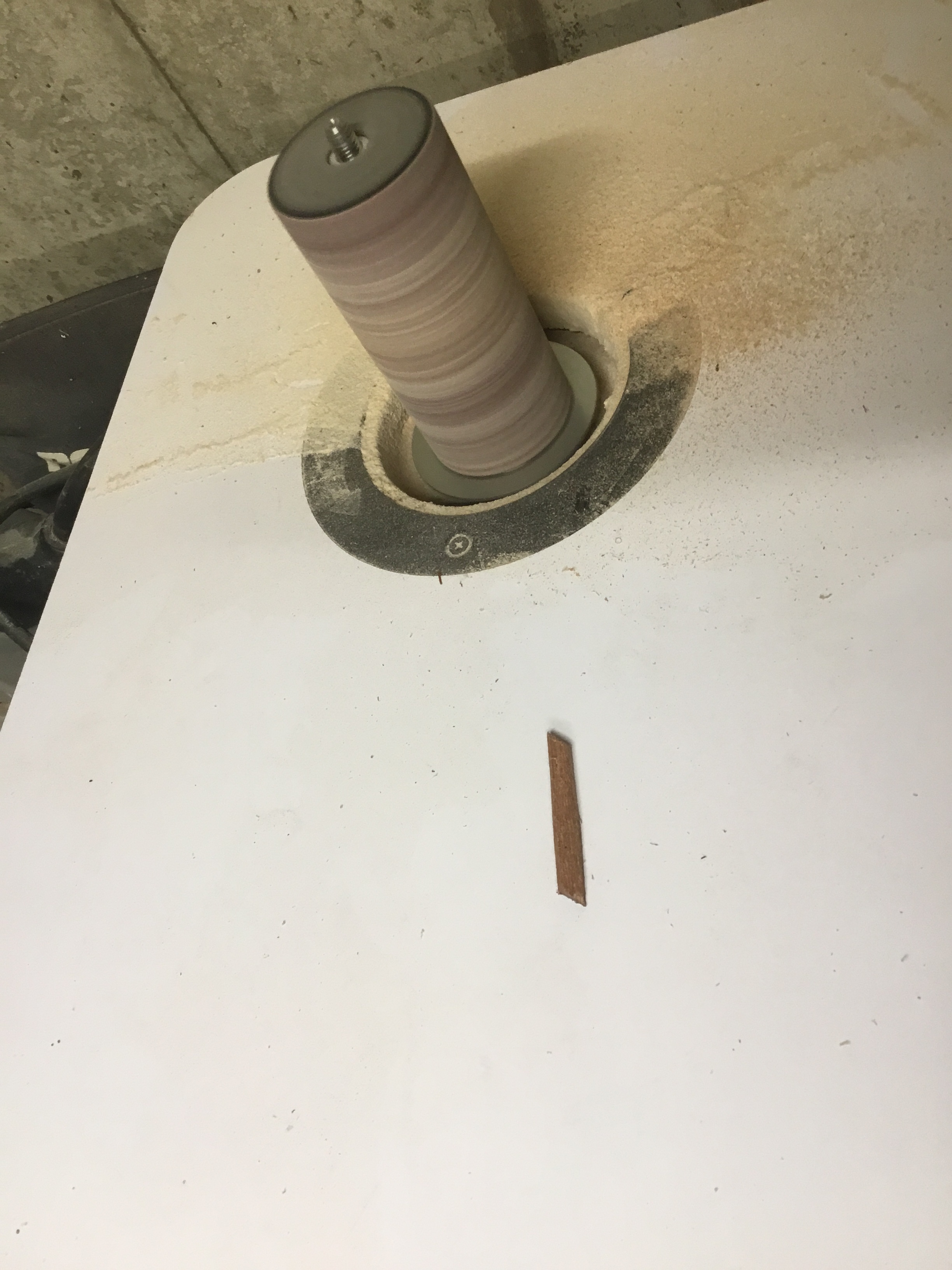 The next thing that needed to be done was to create heel caps to provide stability and hide tear out on the bottom of the neck. This would hide tear out, but more importantly keep the repaired seam on the back from ever separating again. I created these using thin pieces of mahogany, cutting them to shape on my band saw, and sanding them smooth on the spindle sander. Since I was attaching these directly to the finished guitarron, and this guitarron is finished with polyurethane (versus the more traditional nitrocellulose lacquer), I needed to use a polyurethane glue (again I chose Titebond …. much better than the more popular Gorilla glue).
