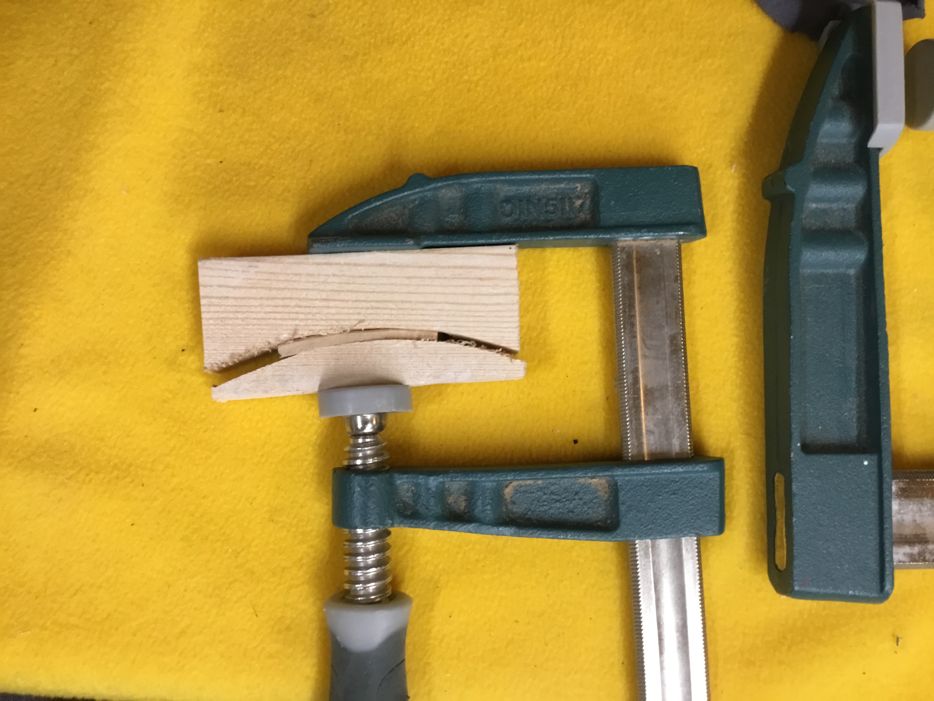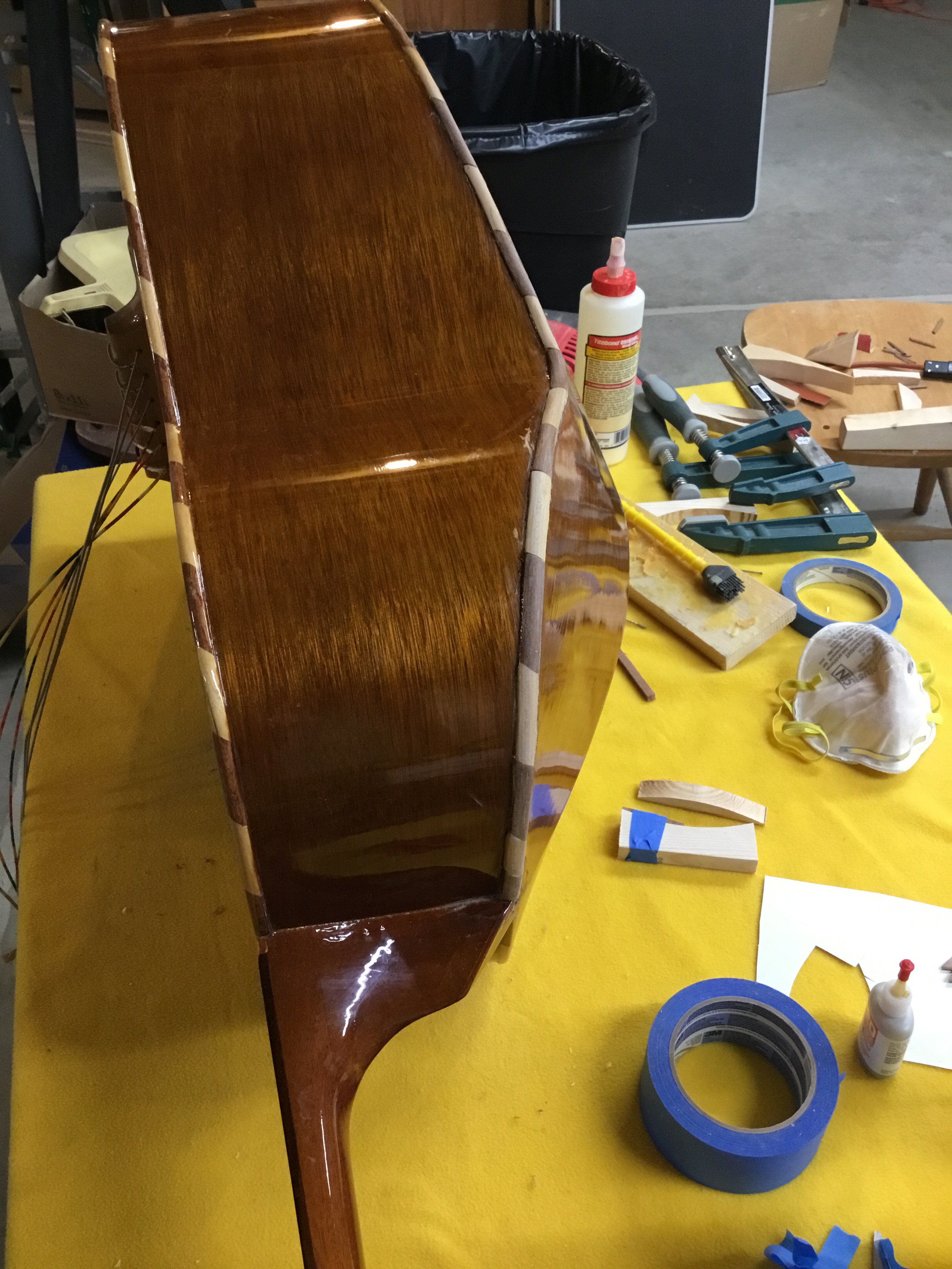Most of my tools are designed to be used with guitars, mandolins, or violins. A Guitarron has a much different shape than a guitar because the back isn’t flat. The body tapers from the bottom to the top, and the back is rounded, with a seam running down the middle of the back. All my clamps are designed to be used on an instrument with a back that is essentially flat, and even Archtops and violins which have carved, rounded backs have 90 degree angles where the back meets the side. And kerfing is triangular in shape with the top at a 90 degree angle. And as I pointed out, the back of the Guitarron is not 90 degrees.