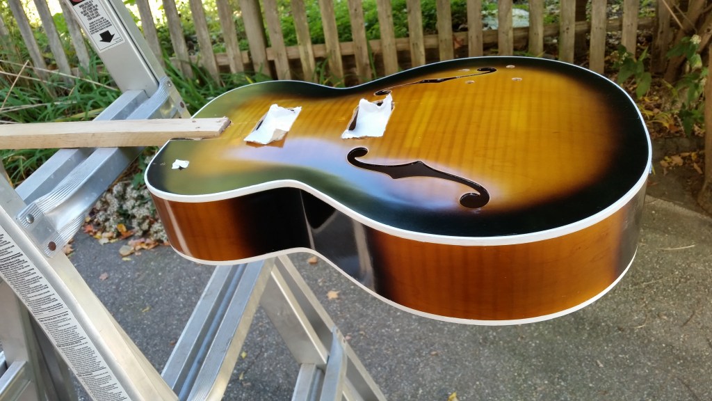 I sold it on eBay for $550. A nifty little profit, but I almost wished I had kept it, but a man can only have so many archtops (I have a few). It was a really fun guitar and I put a lot into it, and I learned a ton in the process.