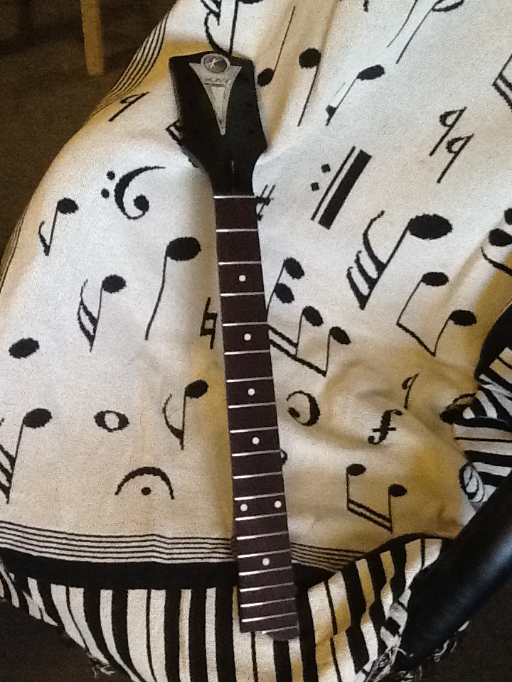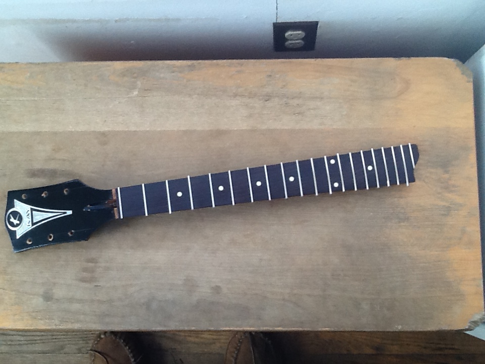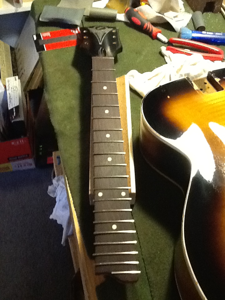 I re-installed the neck, threw some strings on it, and fixed the action as much as I could. Kay necks are sometimes referred to as baseball bat necks, you could hit a fastball a long way with one of these babies.