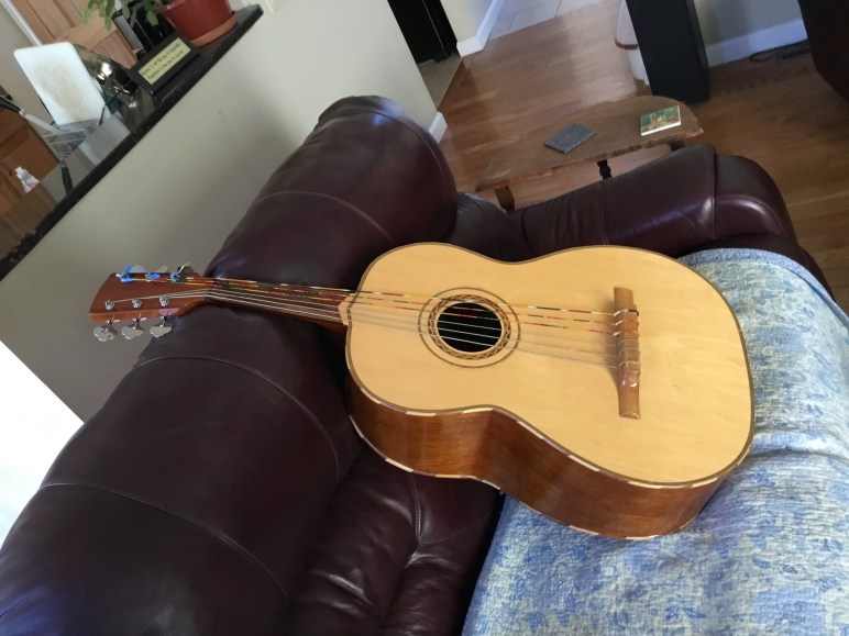 Probably from the 1800's, don't think the strings had ever been changed, fixed 3 cracks in the back and 1 on the soundboard (still visible), needed 8 new mother of pearl inlays cut and installed for the binding, fixed the tuners, installed a new nut, set the action and intonation, polished the tailpiece, polished, polished, … Continue reading Carol’s Bowlback Mandolin